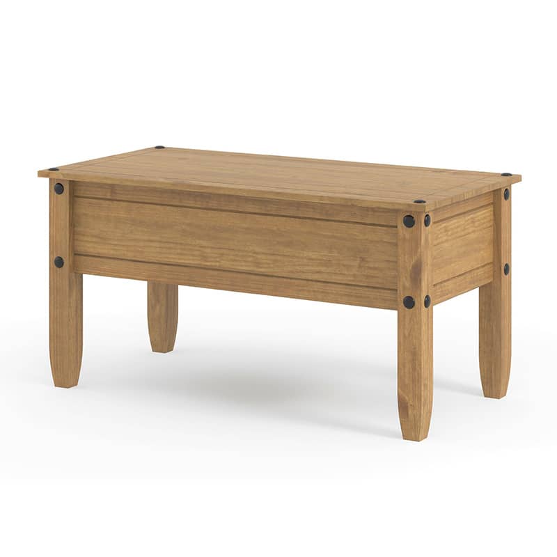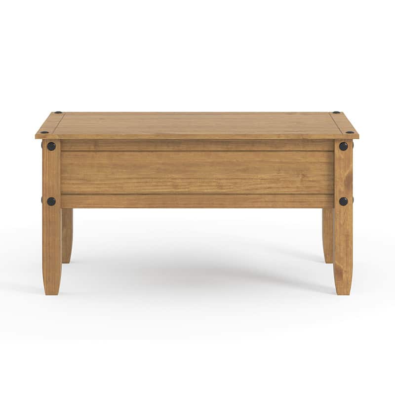 This large coffee table boasts sturdy legs that are built to last, and you can even add a touch of glam with the optional metal pin decoration. The old wax finish gives it a classic, rustic look that’ll bring a touch of vintage charm to any home.