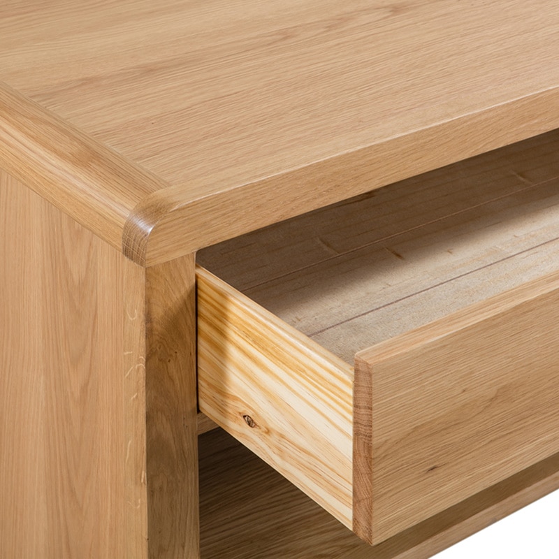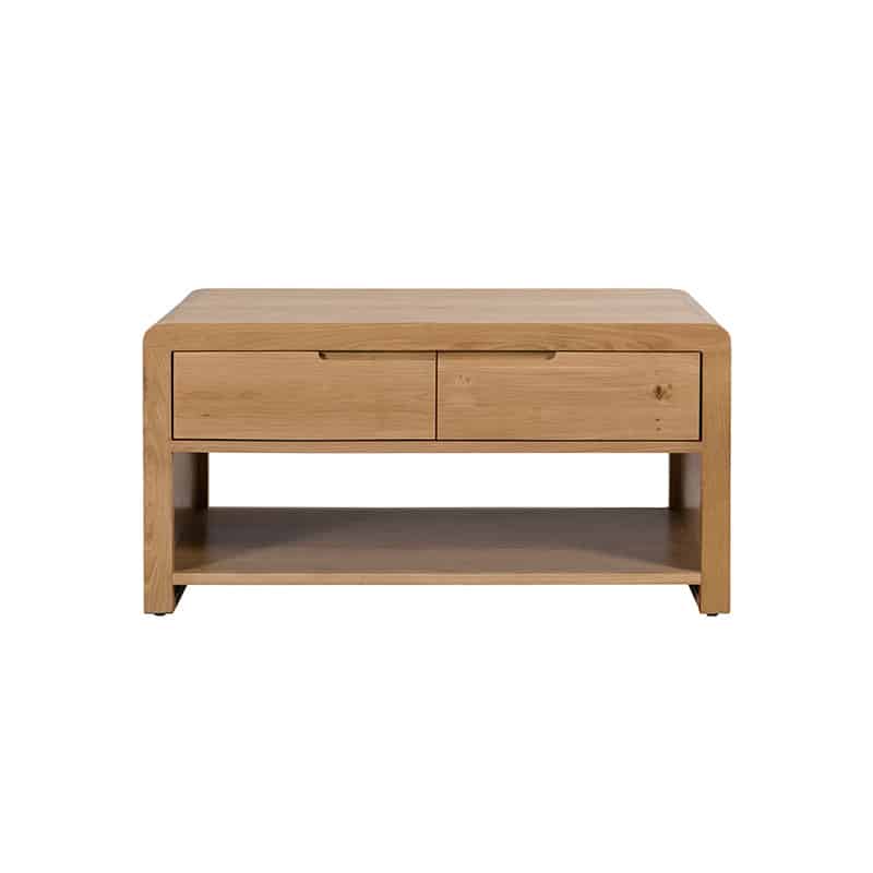 Crafted from solid oak and oak veneers, the Curve combines clean lines with a gentle curved ediging, adding a modern, retro feel to any dining area. The Curve Coffee Table features one large spacious drawer, with the vision of two on the outside, along with a shelf for extra storage. Part of the Julian Bowen Curve Dining and Occaional Collection.