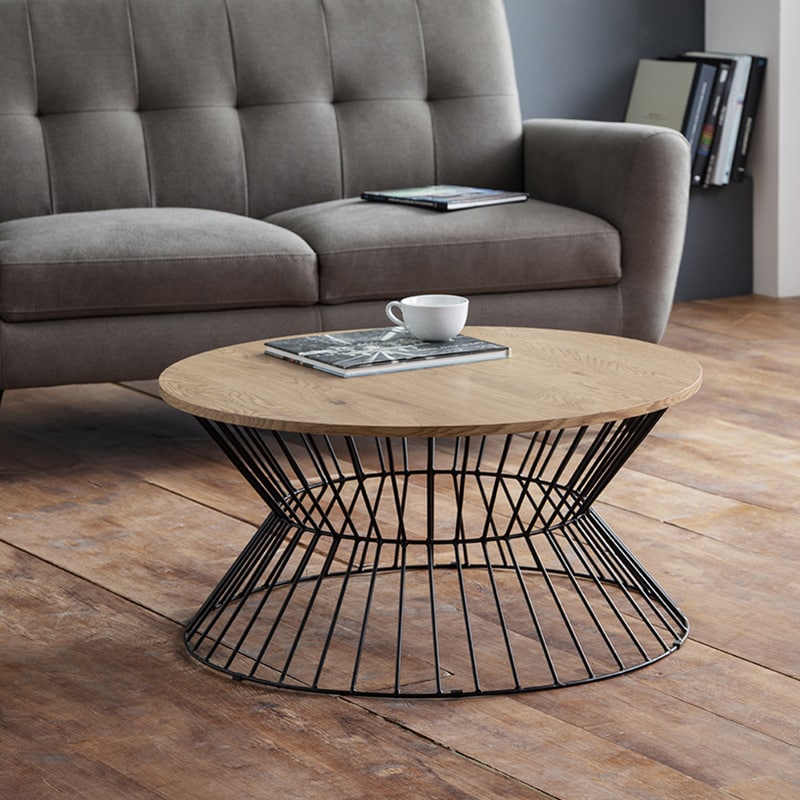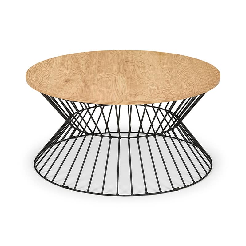 The Jersey Coffee Table will add a contemporary addition to any living area. Featuring a black wire frame with a fixed round oak effect top, this coffee table creates a striking industrial feel with a classic contrast.
