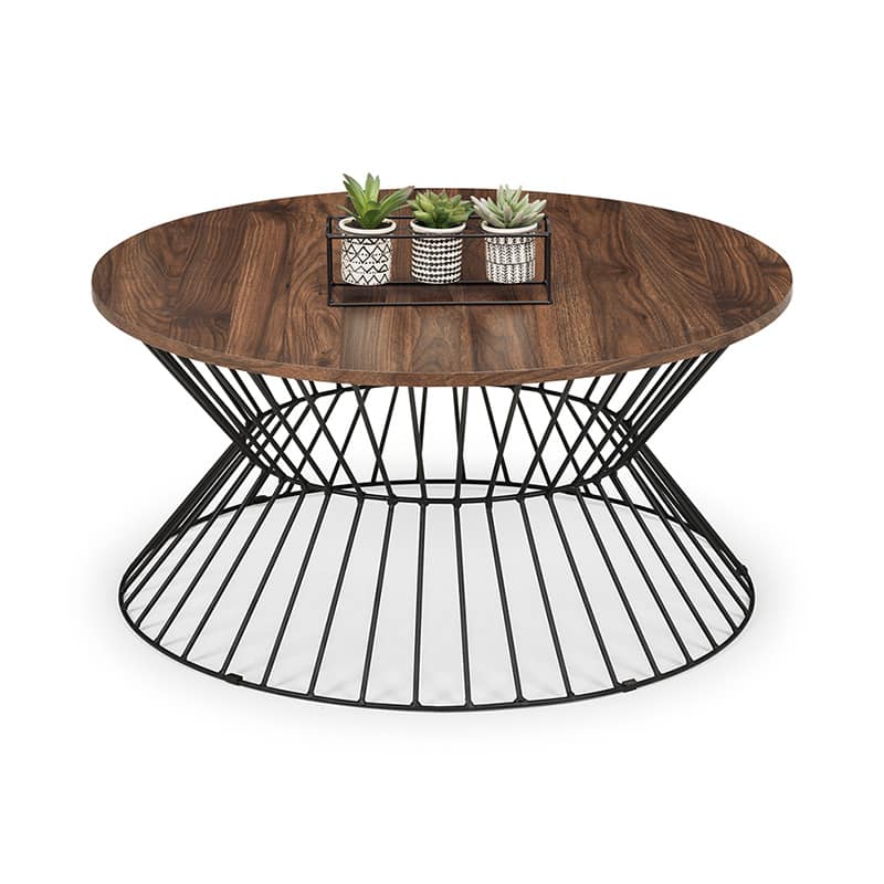 The Jersey Coffee Table will add a contemporary addition to any living area. Featuring a black wire frame with a fixed round walnut effect top, this coffee table creates a striking industrial feel with a classic contrast.