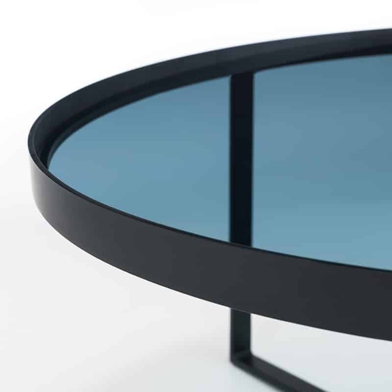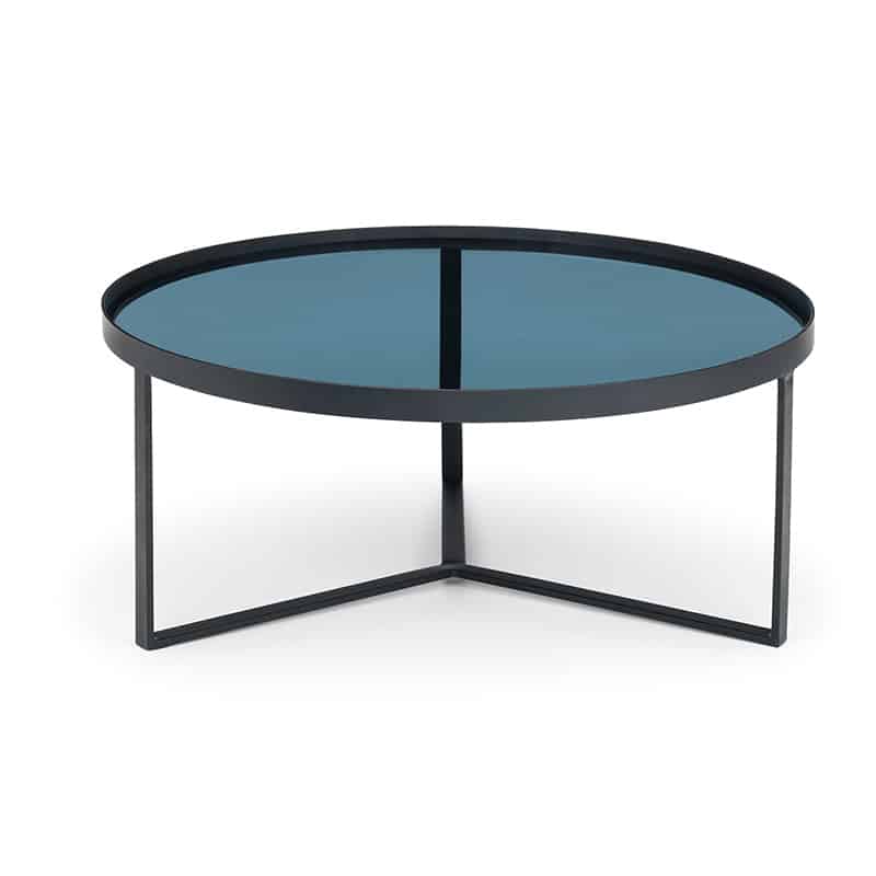 - Choose from a smoked tempered glass top and a walnut effect top that both sit beautifully upon a black metal base.