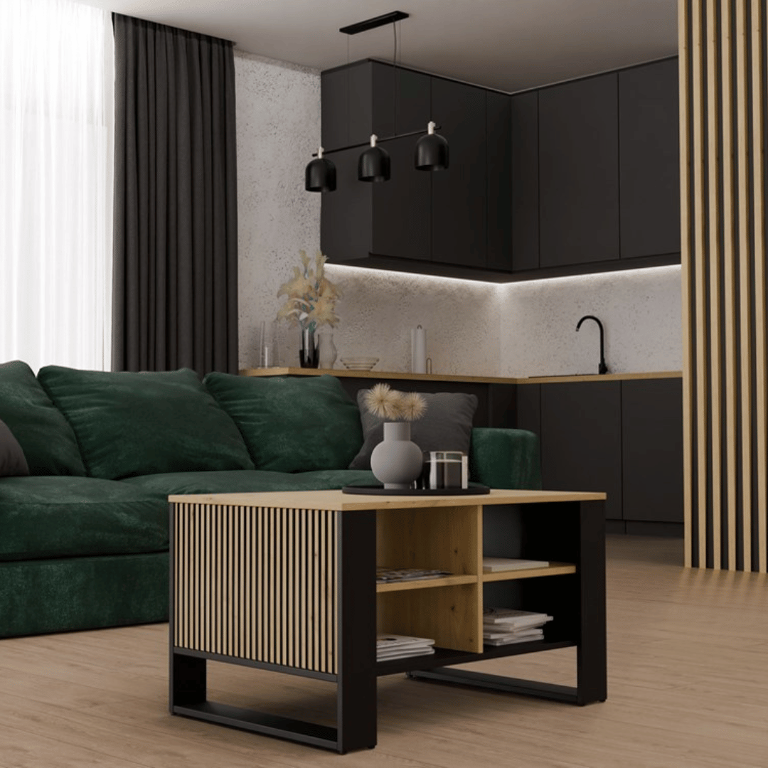 Its defining feature lies in the meticulously milled, vertically grooved side panels, designed to emulate the look of fine wooden slats. This subtle detail introduces architectural charm and a bespoke finish, setting this coffee table apart from ordinary alternatives.