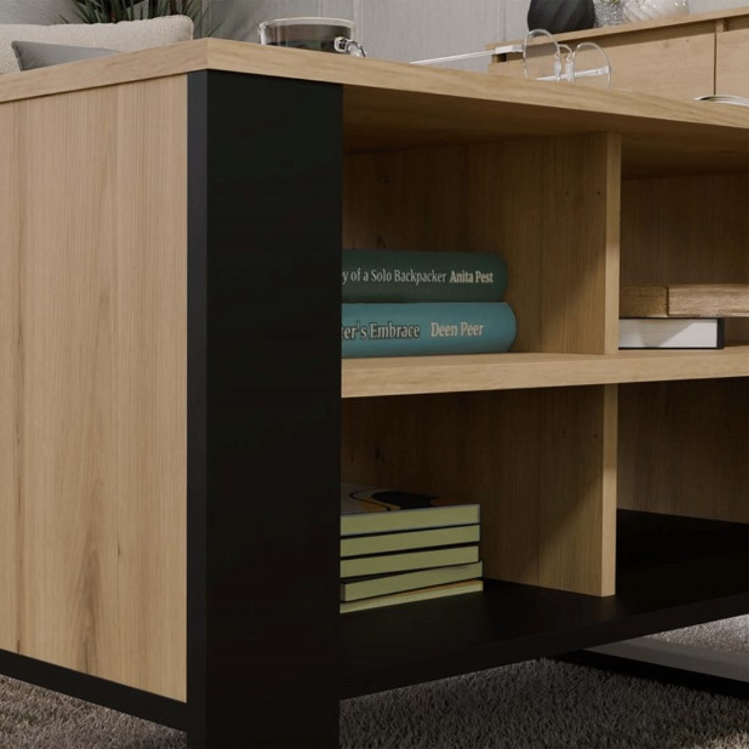 - Discreet Storage: Four generous shelves beneath the tabletop provide practical, concealed storage for a clean, organised space.