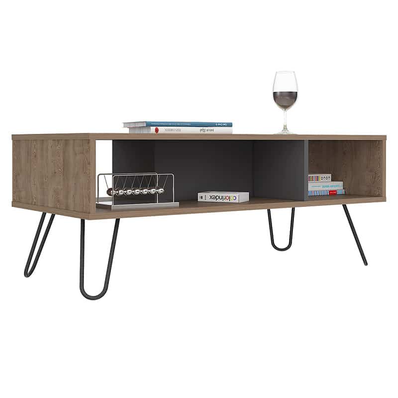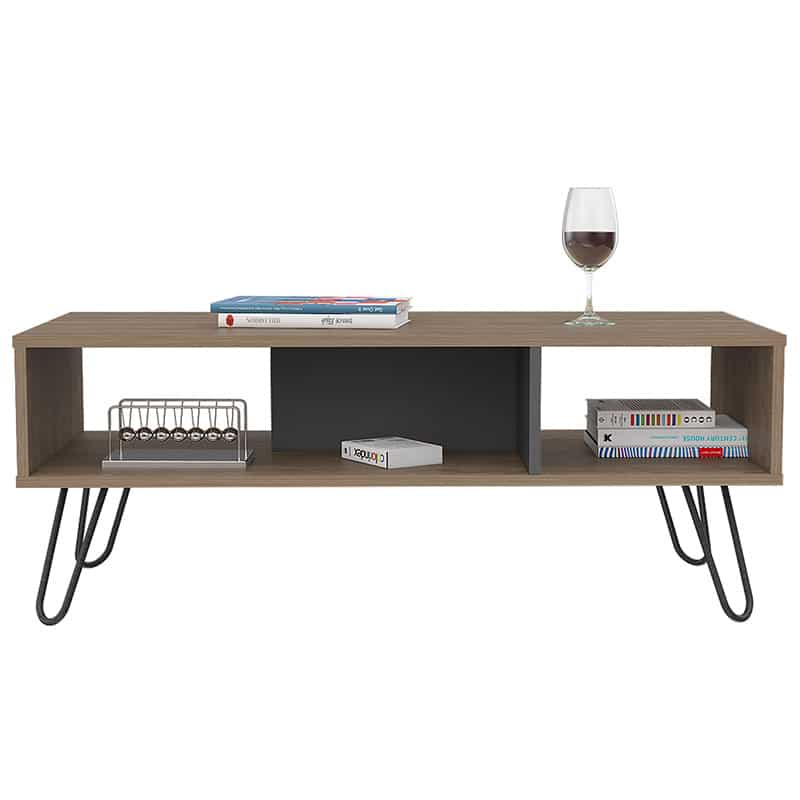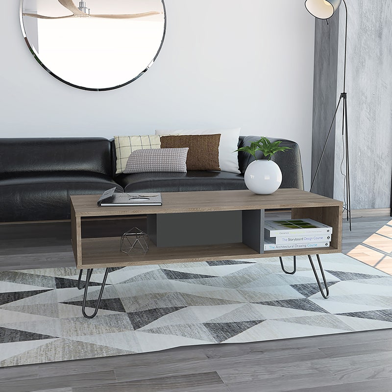And talk about storage options! Several under-the-table compartments equip the coffee table to keep your space neat and tidy. The black metal hairpin legs are the epitome of industrial chic, making this coffee table a real showstopper.