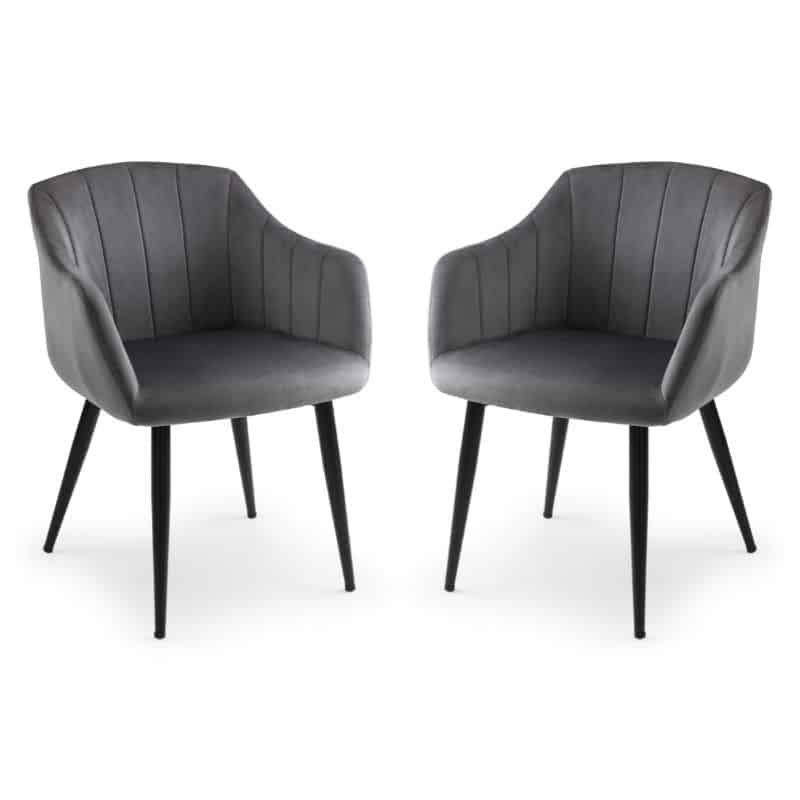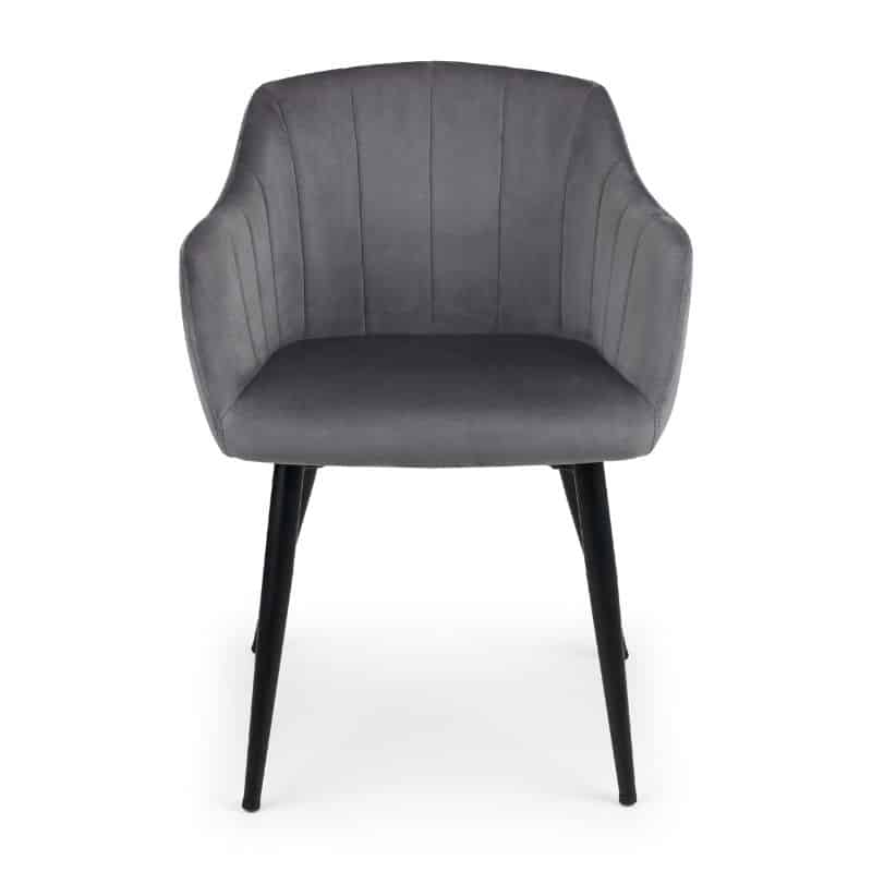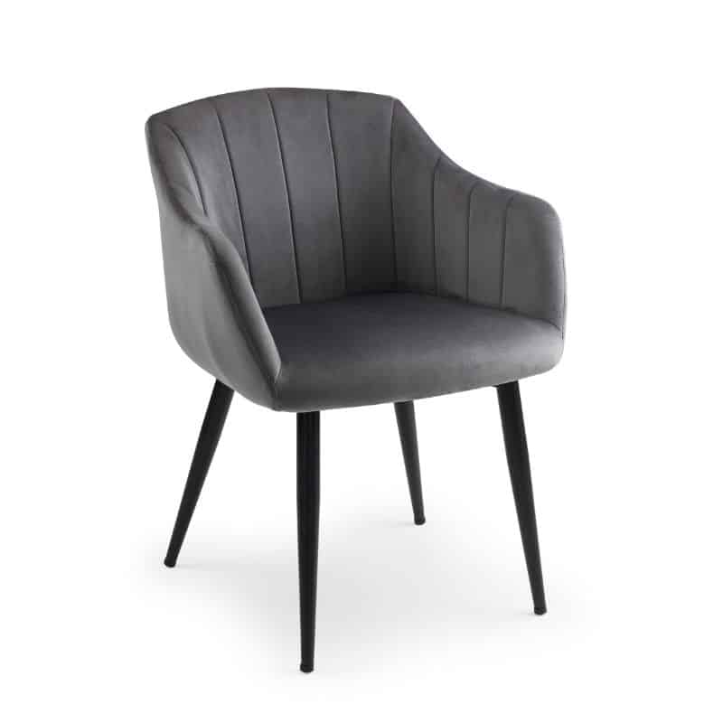 The Berwick round table gives an industrial feel to your dining area. With an easy-to-clean oak finish top and black frame legs, this table will provide you and your family with a relaxed dining experience.  Our Hobart chair features strong matte black legs and a complimentary grey velvet finish that leaves a feeling of class and elegance. Paired together, the Berwick and Hobart forms a beautiful dining set which is modern and classy.