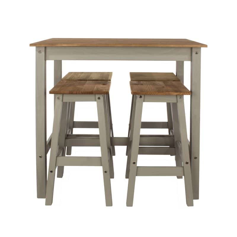 Attention all small space dwellers! This grey breakfast table set is just what you’ve been searching for. With its sleek contemporary plank top design and a grey waxed finish underframe, it’ll give your dining room a chic upgrade. But that’s not all, the antique waxed top surface is made of solid pine, making it a sturdy and durable option.