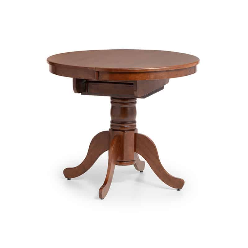 This Canterbury table brings a touch of elegance to any room, with its stylish pedestal base. Finished in a mahogany colour, this Canterbury table offers space saving practicality, extending to an oval table with can fit six people with an easy-to-use butterfly mechanism. Constructed from Solid Malaysian Hardwood and MDF, this traditional design will create a statement piece in your dning area. Accompanied by 4 Canterbury Dining Chairs.