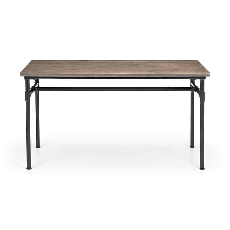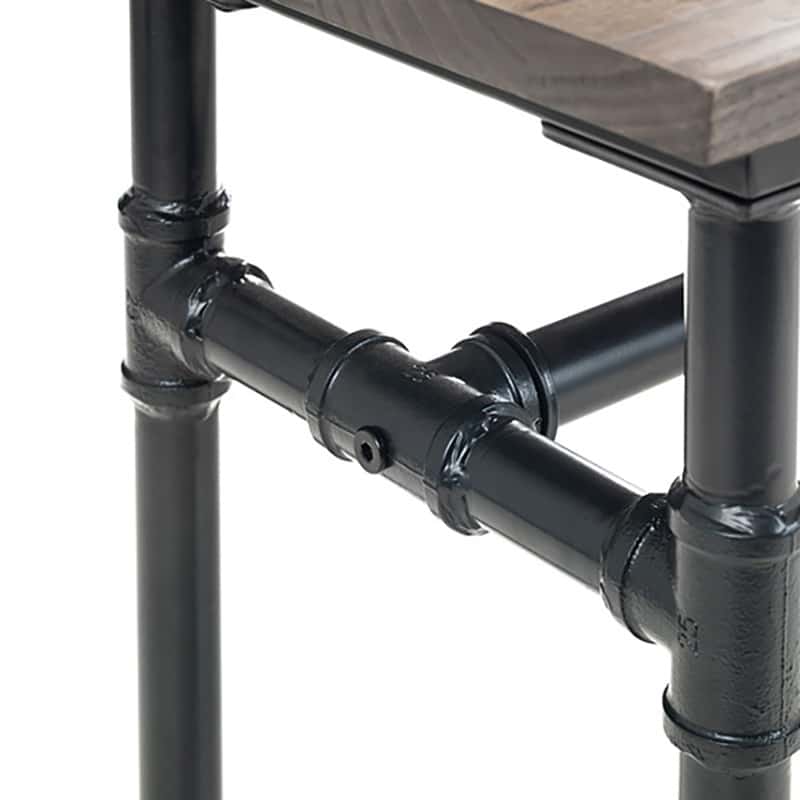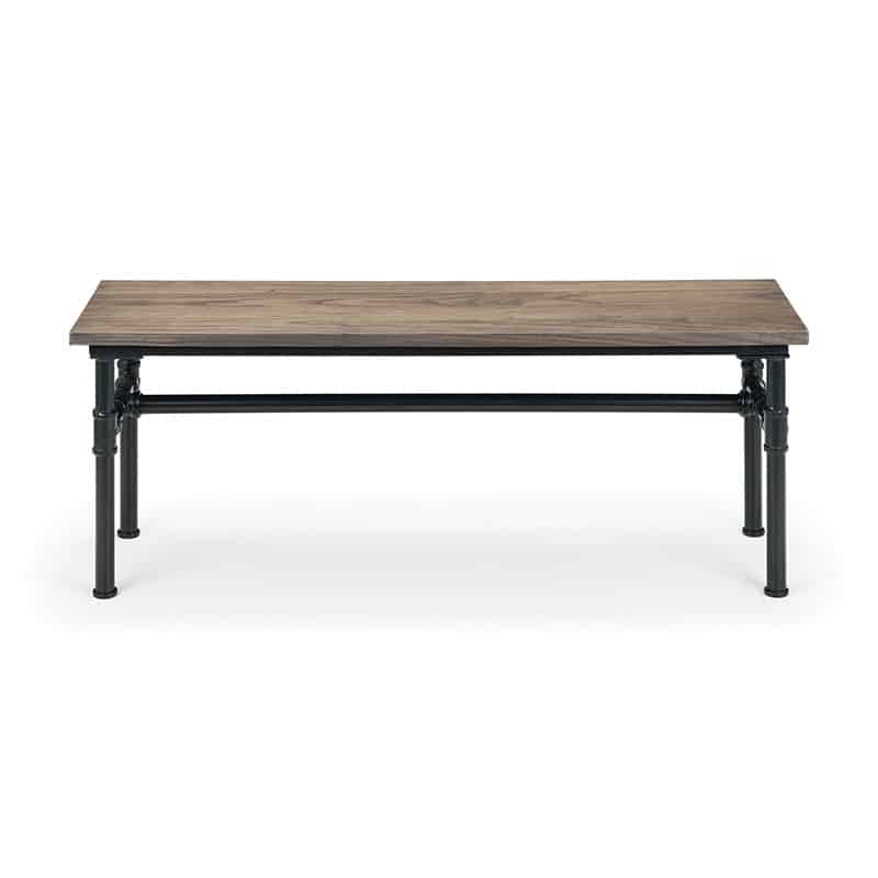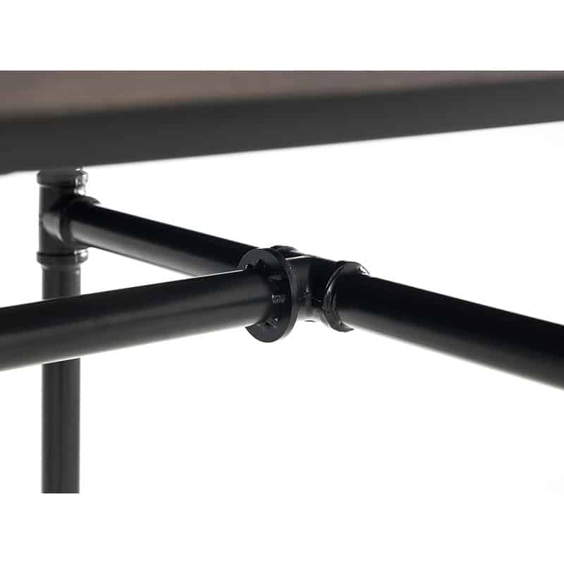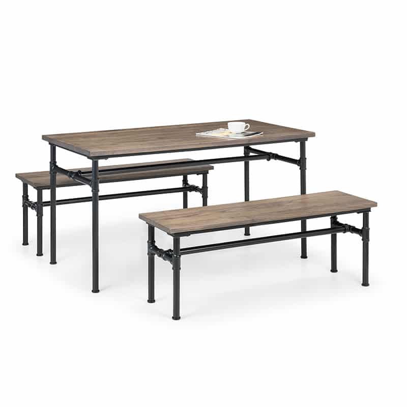 The Carnegie Dining Table offers an industrial design, perfect for your kitchen, dining room and other interior space. The use of solid Elm wood in a mocha finish adds a distinctive statement look, whilst beautifully showing off the wood grain. Finished with powder-coated steel legs in a pipework style, the Carnegie is sure to be an eye-catching piece in any room. This set includes a Carnegie Dining Table and two Carnegie Benches.
