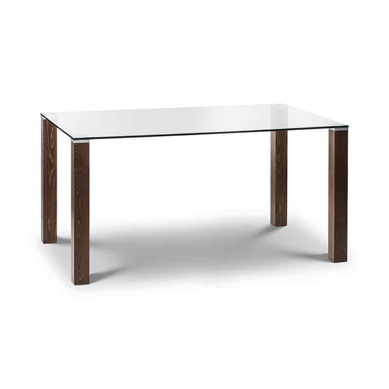This contemporay dining set is constructed from solid beech, stained a warm walnut colour, with a 12mm tempered glass top and upholstered, padded seats the Cayman dining set is the perfect addition to your contemporay dining room. The ideal table for those sophisitcated dinner parties with a unique design.