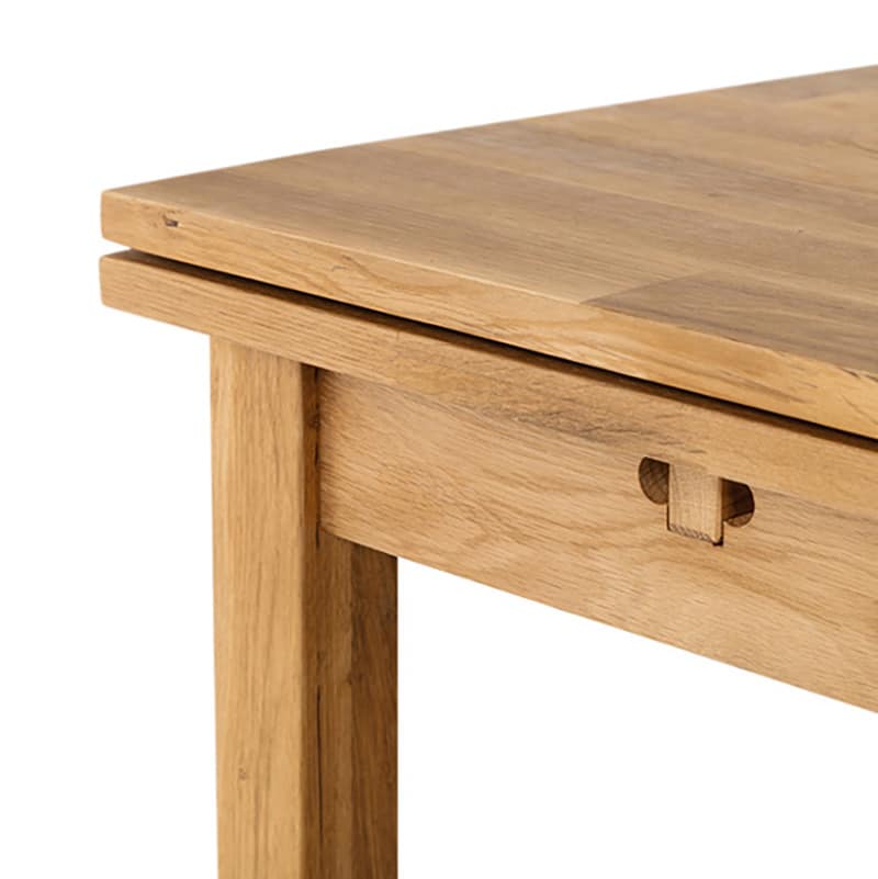 The Coxmoor extending dining table has been beautifully crafted from the finest, solid white oak, for a natural and traditional look to your dining room. The dining table has a rich oiled finish for added durability and to enhance the woods real natural grain. Featuring a retractable leaf extension system that is easy to use and stores within the table when not in use.