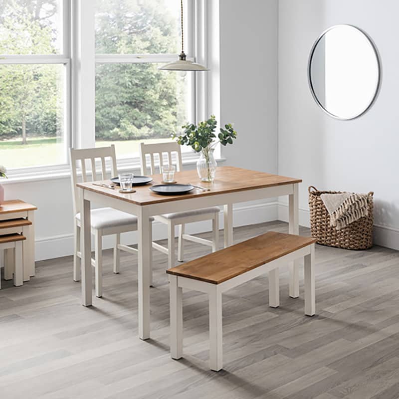 Coxmoor ivory & Oak dining table, bench & 2 chairs