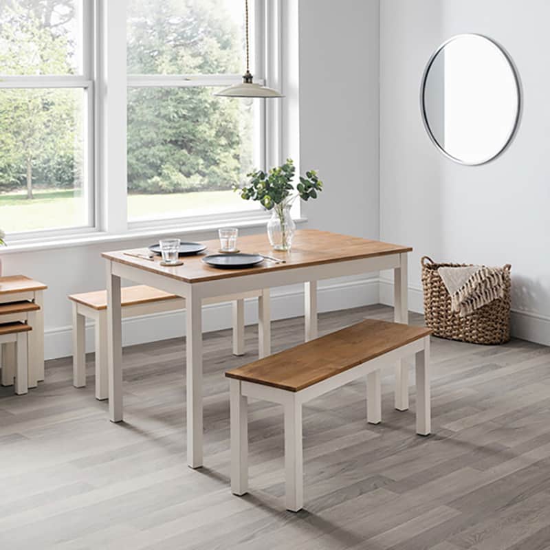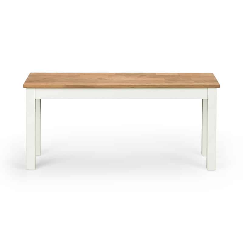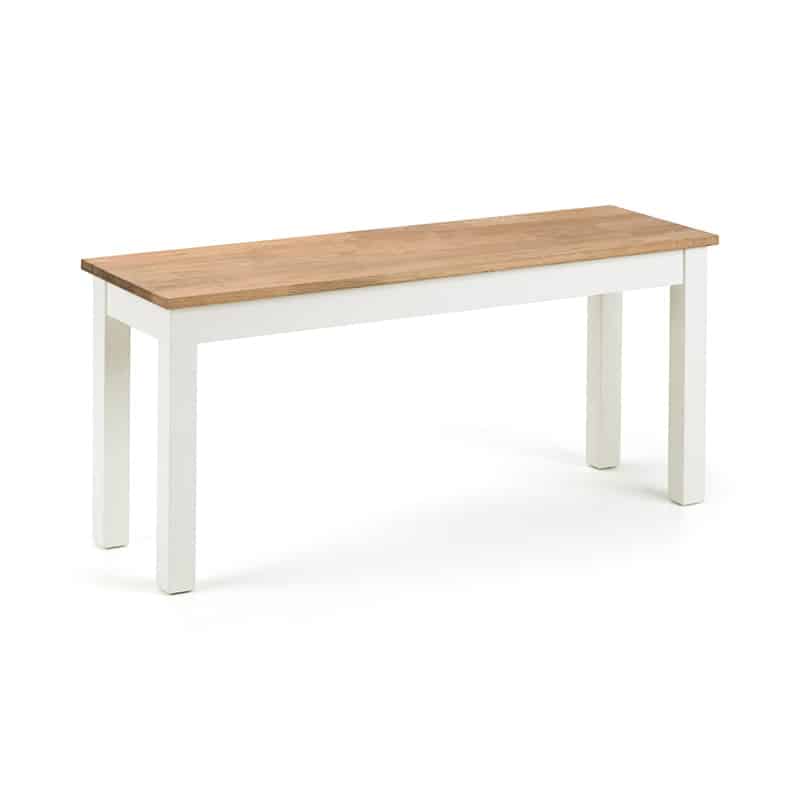 The Coxmoor dining table has been beautifully crafted from the finest, solid oak in an ivory lacquer, for a natural yet contemporary look to your dining room. The dining table has a rich finish for added durability and to enhance the woods real natural grain. The Coxmoor Oak Benches are crafted from Solid American Oak with a contemporary ivory & oak finish. Bringing a classic and timeless design into your home, suitable for a wide range of décor