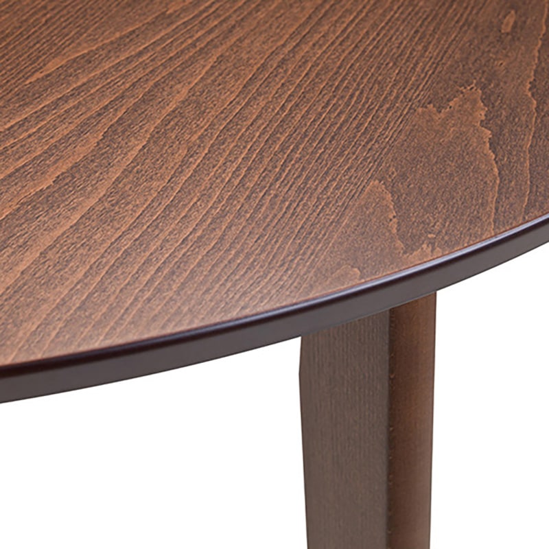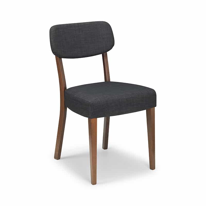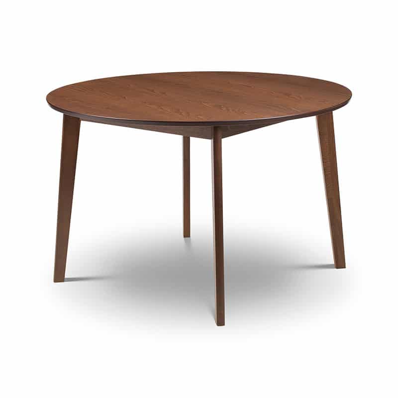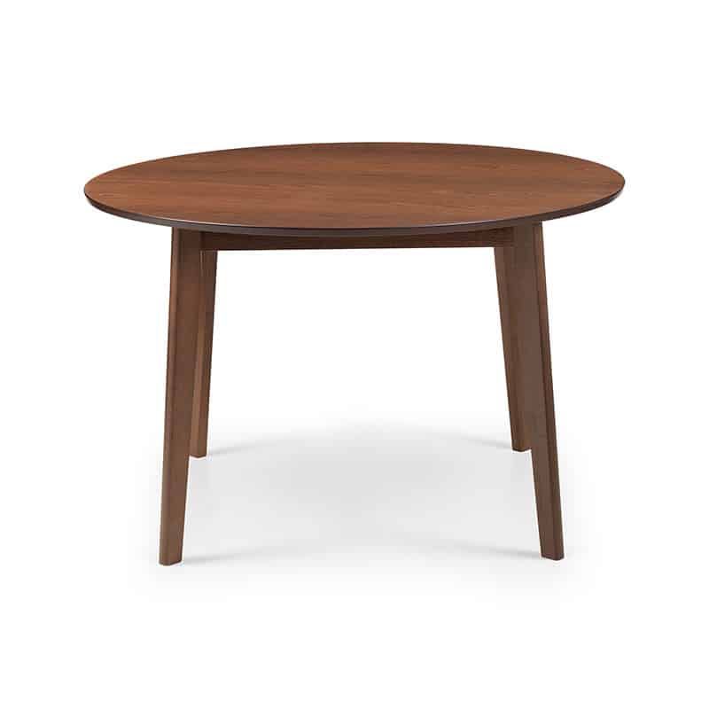The Farringdon round dining table offers a timeless, functional accent to your home. Bringing warmth to any dining room, perfect for a mix of modern or traditional decor. Crafted from walnut effect foil wrap, this rich coloured dining table highlights the natural beauty of the grain. Featured with 4 Farringdon dining chairs. Offering hints of retro and Scandinavian designs, the Farringdon Dining Chair brings a touch of mid-century sophistication through a fashionable combination of shapes and forms. Upholstered in a grey linen fabric, this dining chair features an open back seat finished with a rich walnut frame.