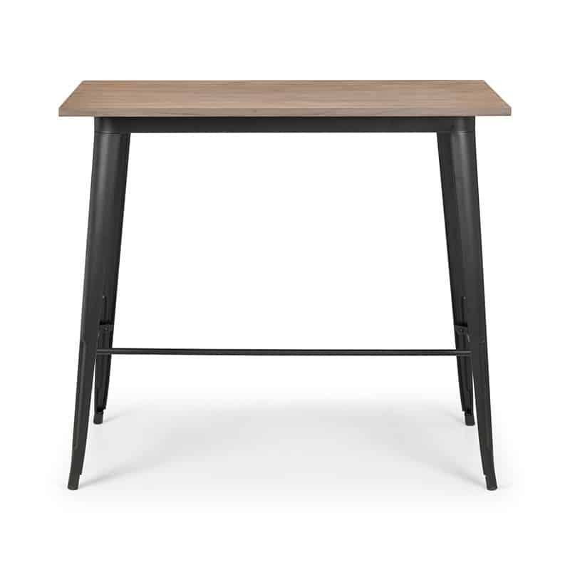 Crafted from solid Elm wood and satin black powder coated steel, The Grafton Bar Table offers a suitable dining or drinking area for up to 4 people. Accompanied by 2 Stools, crafted from solid Elm wood and satin black powder coated steel, The Grafton Bar Features an open curved back for extra comfort, adding an industrial touch to any room