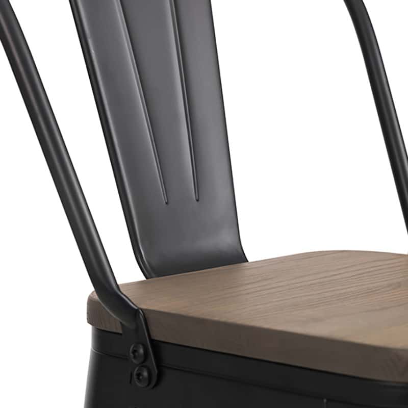 - Crafted from Solid Elm wood and Satin black powder coated steel