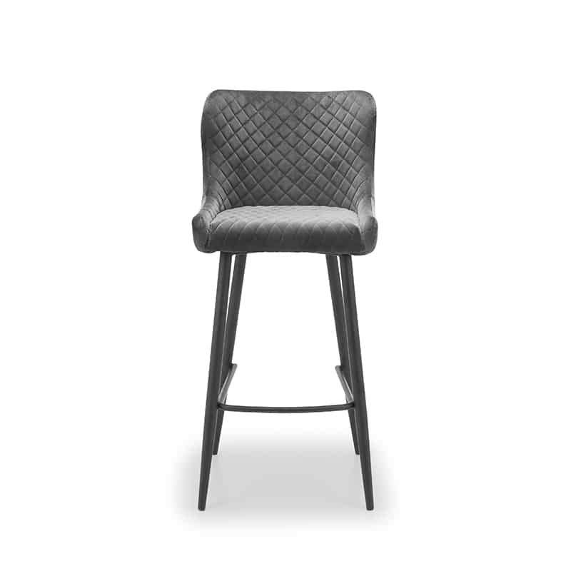 Crafted from solid Elm wood and satin black powder coated steel, The Grafton Bar Table offers a suitable dining or drinking area for up to 2 people. Paired up with 2 striking Luxe Grey Velvet Bar Stools, with luxurious quilted stitching, adding a modern, industrial feel to any room.