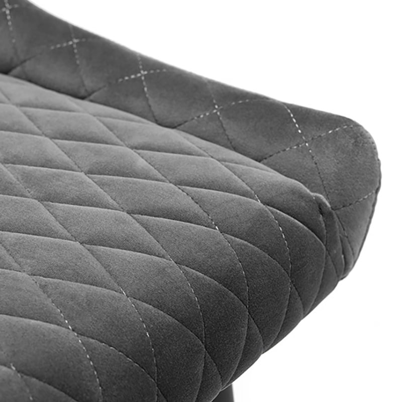 - Upholstered in luxurious grey velvet fabric with quilted detailing