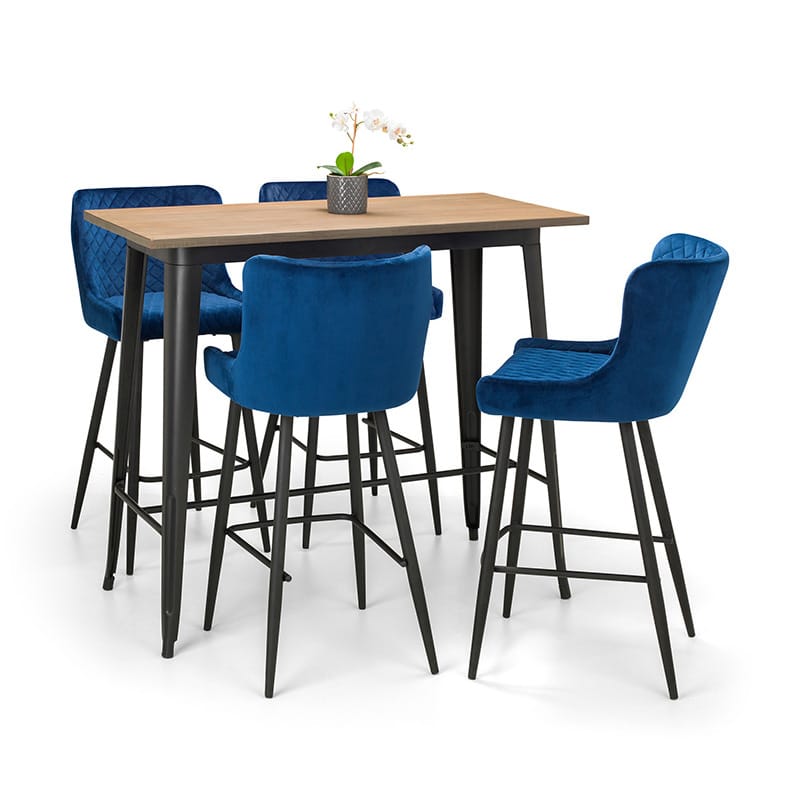 Grafton bar table & 4 luxe blue bar stools