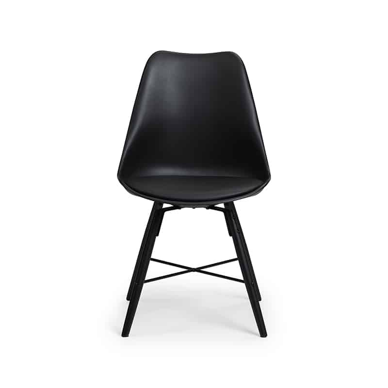 Featuring a 25mm rubberwood top, the Hockley dining table displays the natural colour and unique grain of the wood. A contrasting painted black rubberwood frame allows this dining table to be suitable for a wide range of décor. Accompanied by 6 Kari Dining Chairs, featuring a curved design that conforms to the natural curve of the spine, paired with a high-quality padded seat allowing you to reach maximum comfort. Featuring a black, easily-cleaned seat and black legs, with an steel cross bar giving this chair a modern industrial feel.