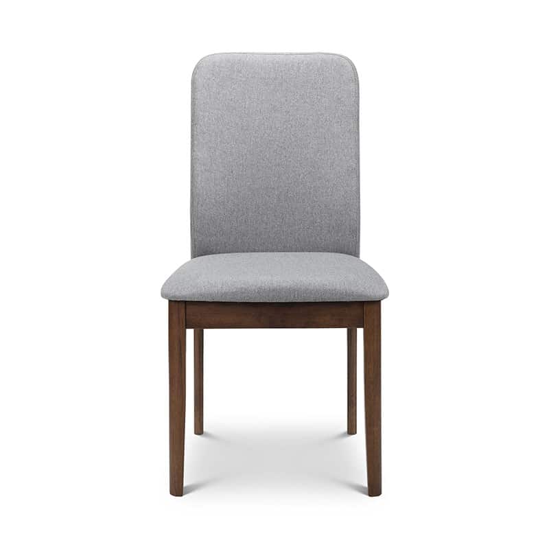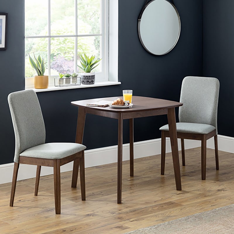 The Lennox square dining table offers a timeless, functional accent to your home. Bringing warmth to any dining room, perfect for a mix of modern or traditional decor. Crafted from walnut effect foil wrap, this rich coloured dining table highlights the natural beauty of the grain. Accompanied by 2 Berkeley Dining Chairs, this simple, yet stylish dining chair features a walnut effect frame, with a grey linen upholstered seat and backrest that are padded for comfort. Thanks to its classic, yet neutral grey fabric upholstery the Berkeley chair is suitable for a wide range of dining room decor