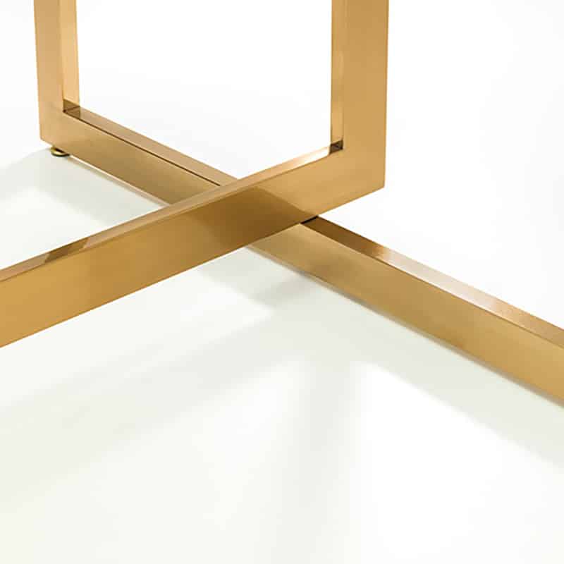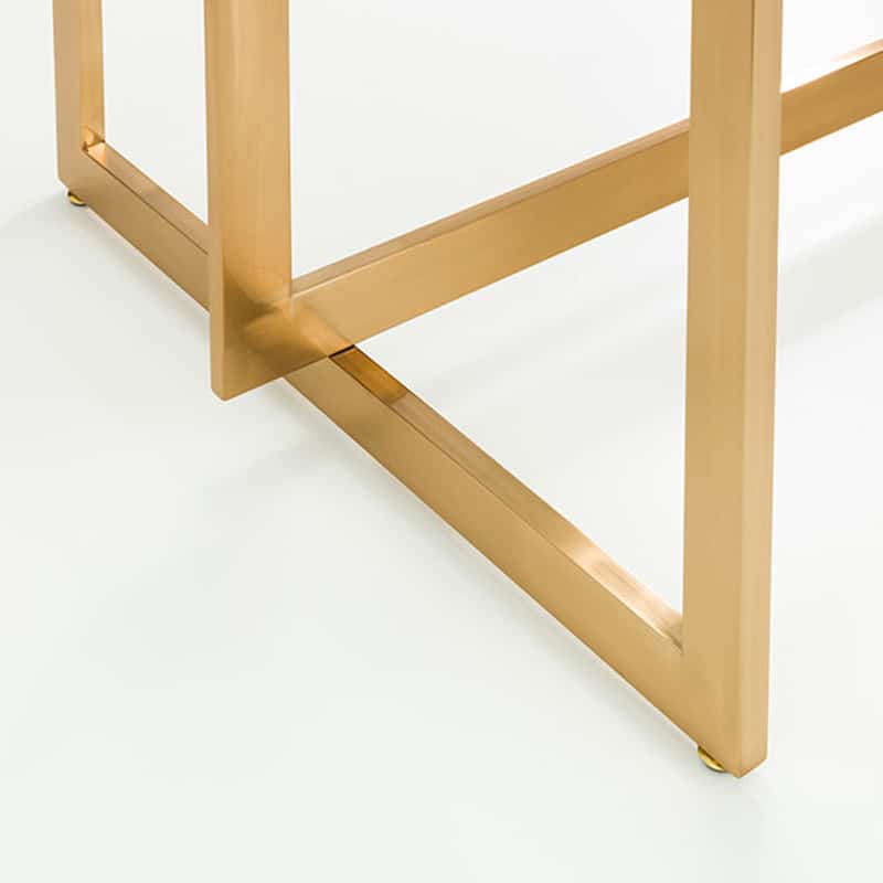 Designed with luxury in mind, Minori is a beautiful table that will take your dining experience to a whole new level. Featuring statement gold geometric legs and a sleek glass top, the Minori provides sophistication and luxury to any kitchen or dining area. Paired with the the Vittoria Cantilever chair, this set brings sophistication and class to your home.