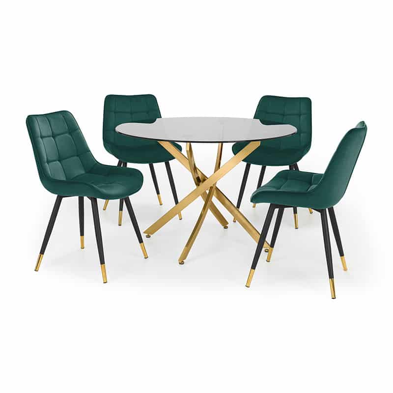 Montero round table & 4 hadid green dining chairs
