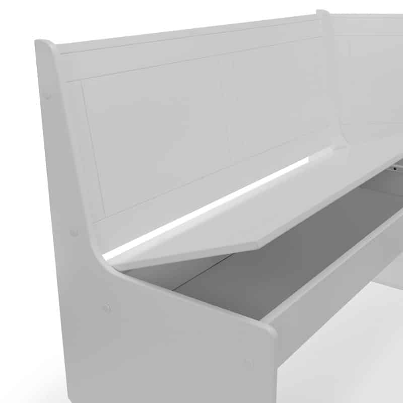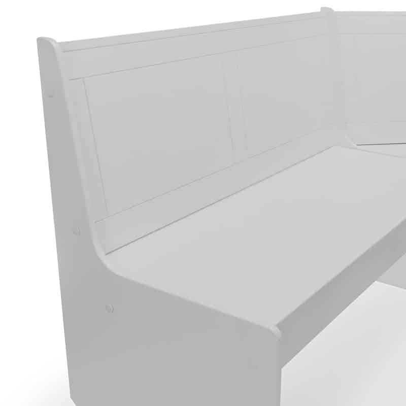 The classic design features tapered legs and sturdy construction that will stand the test of time. The high seatbacks provide comfortable back support while the bench offers extra seating. The dove grey finish pairs well with most wood tones, from light oak to dark walnut. The corner nook shape makes the most of small spaces, tucking neatly into a corner while providing room for up to 6 people.