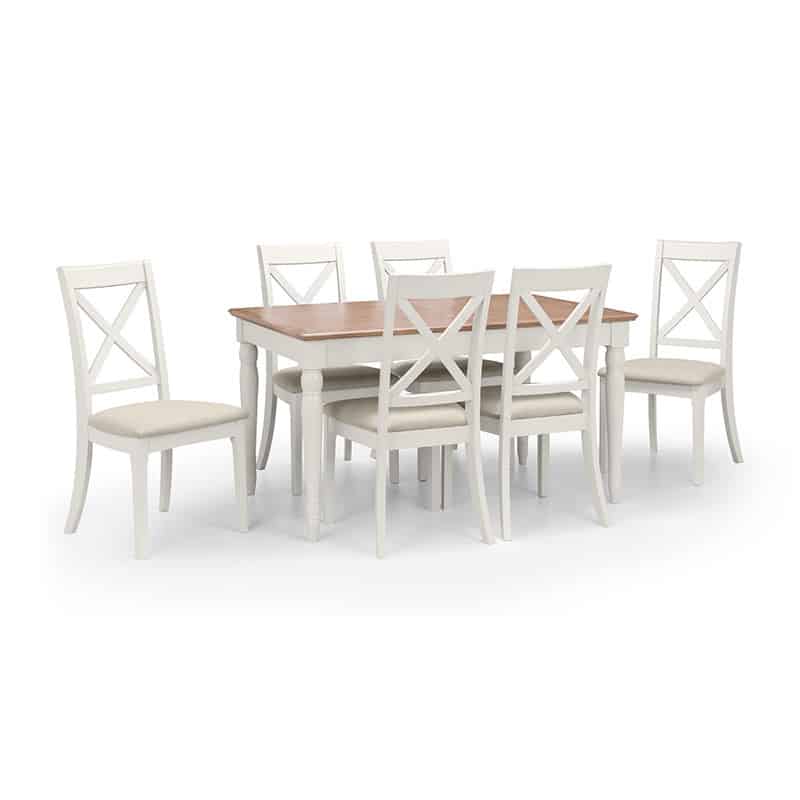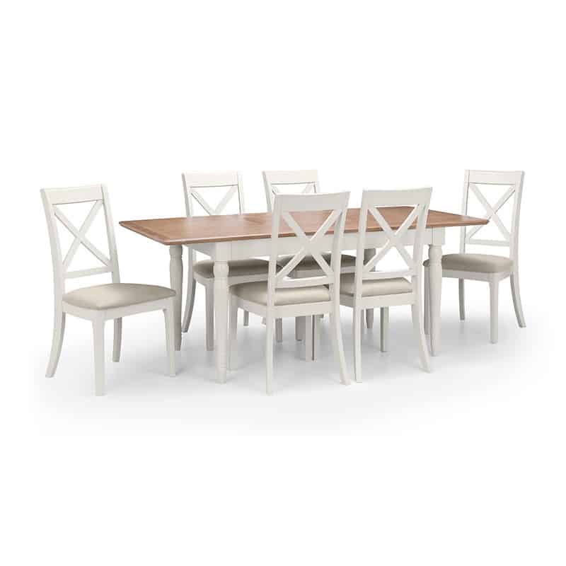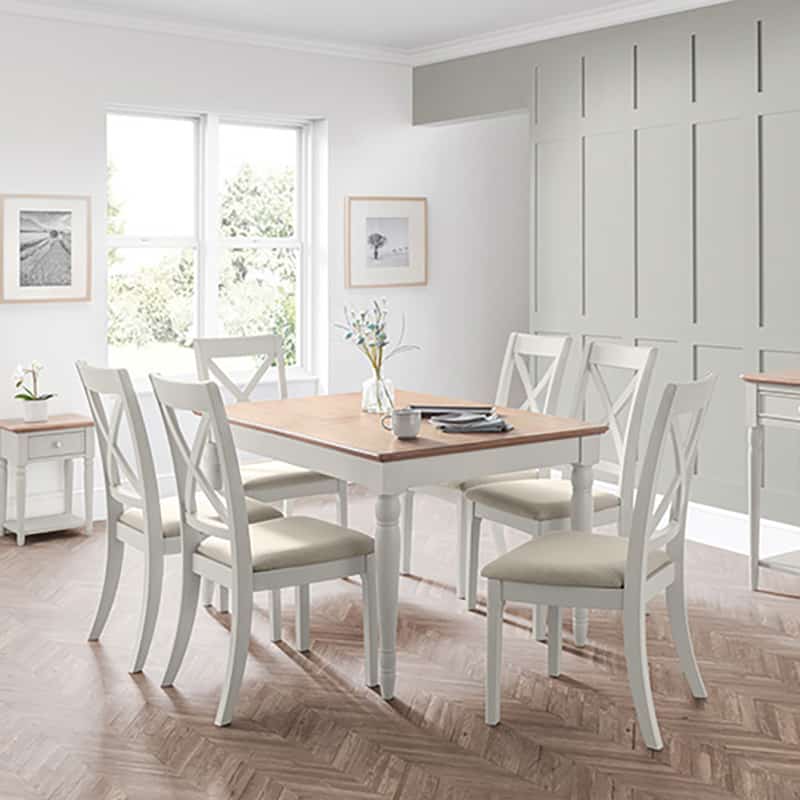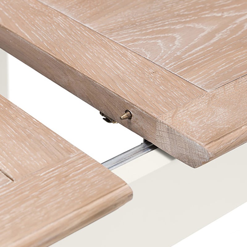 This timeless dining set offers an authentic antique design with a classic turned leg detailperfect for contemporary spaces as well as traditional homes. Finished in a grey lacquer with a limed oak effect top, this Provence features an easy to use 40cm butterfly extension system allowing the extra room for your dinner guests. Paired with 6 Provence Dining Chairs, this dining set is part of the Provence Dining and Occasional Collection.