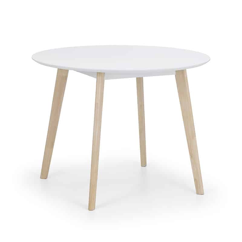 A timeless retro design reflecting the style of the 1950’s. The Casa round dining table has a durable white lacquered top with limed oak effect legs. Crafted from solid Malaysian hardwood and MDF ensuring long lasting durability.