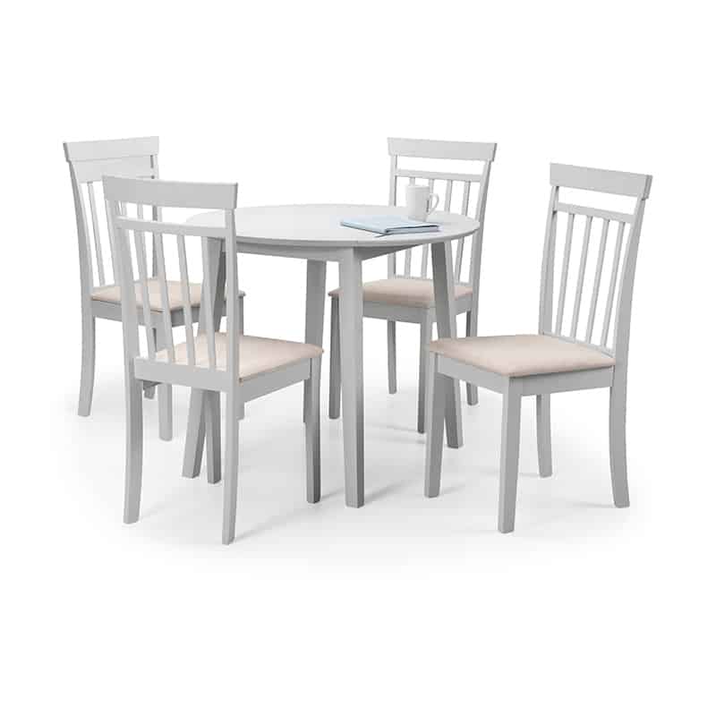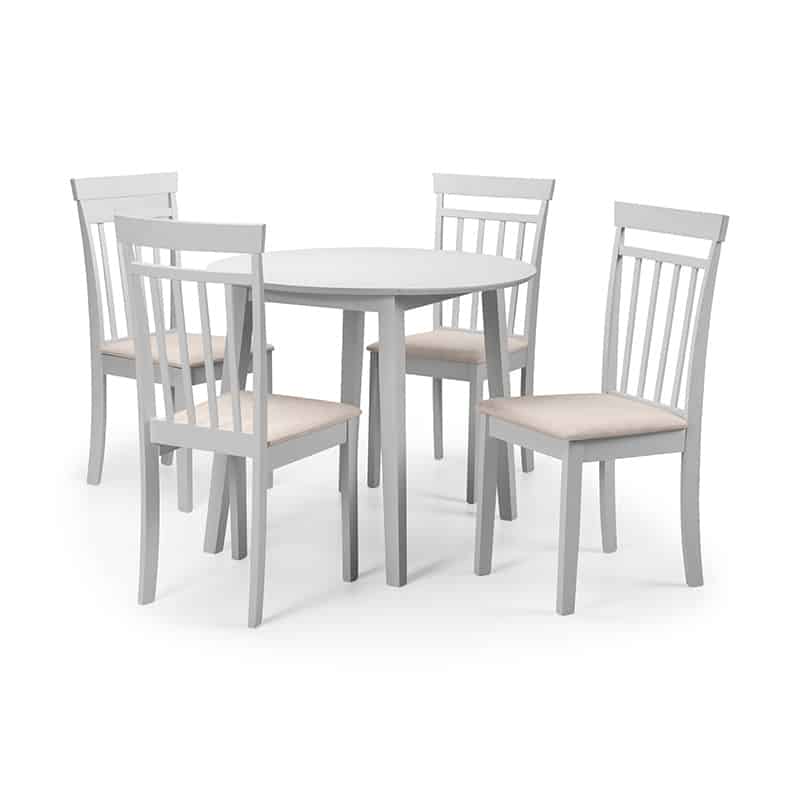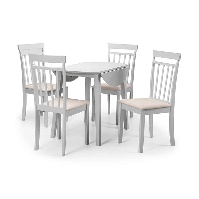 A stylish, double drop leaf round dining table in an immaculate grey lacquered finish. Its clean, crisp look fits seamlessly with both traditional and contemporary decor. The perfect space saving addition for a smaller room.