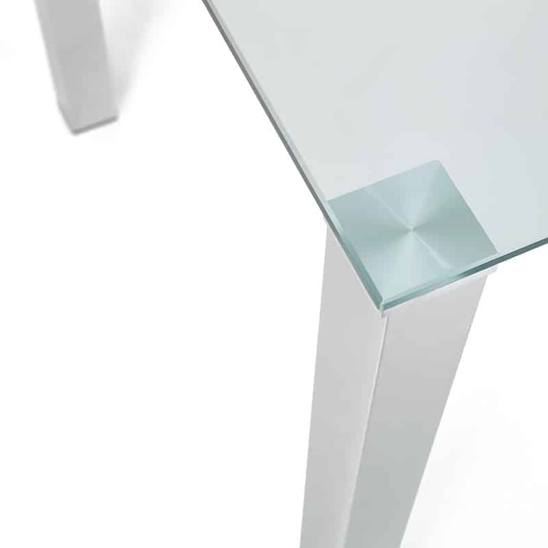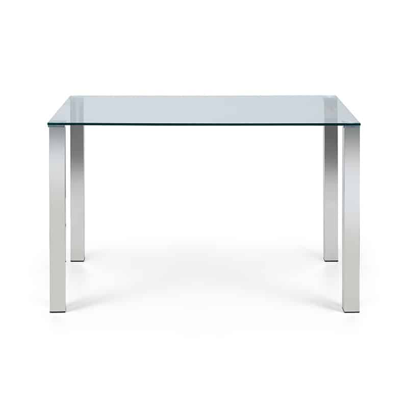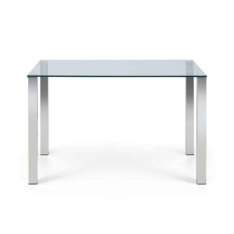 The Enzo is a contemporary and compact chrome and tempered glass dining table that is perfect for modern living. The clean and crisp finish forms a versatile look that fits with a variety of different dining chair styles.