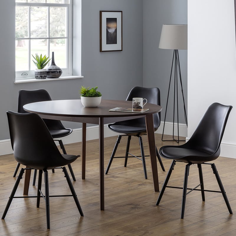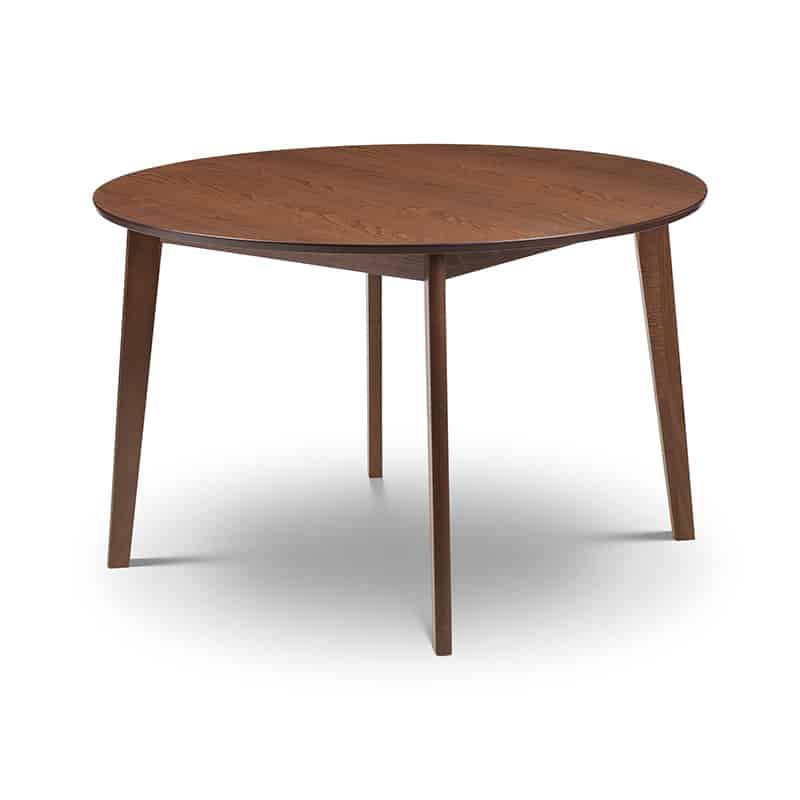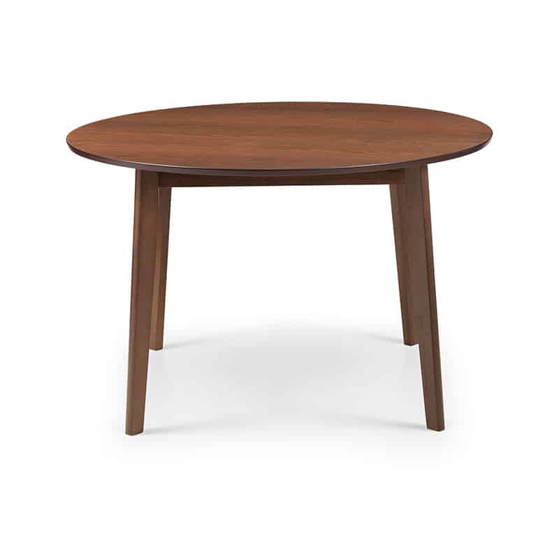 The Farringdon round dining table offers a timeless, functional accent to your home. Bringing warmth to any dining room, perfect for a mix of modern or traditional decor. Crafted from walnut effect foil wrap, this rich coloured dining table highlights the natural beauty of the grain.