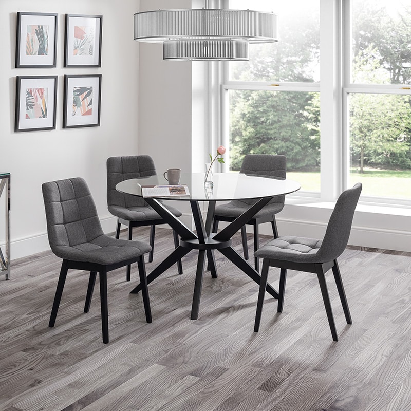 The Hayden Round Table combines a sleek, tempered glass top with a contemporary black solid Beech base to create a statement look in your home. Perfect for drinks, dinner, or catching up with friends over a coffee, Hayden is a versatile piece that suits various styles of décor..