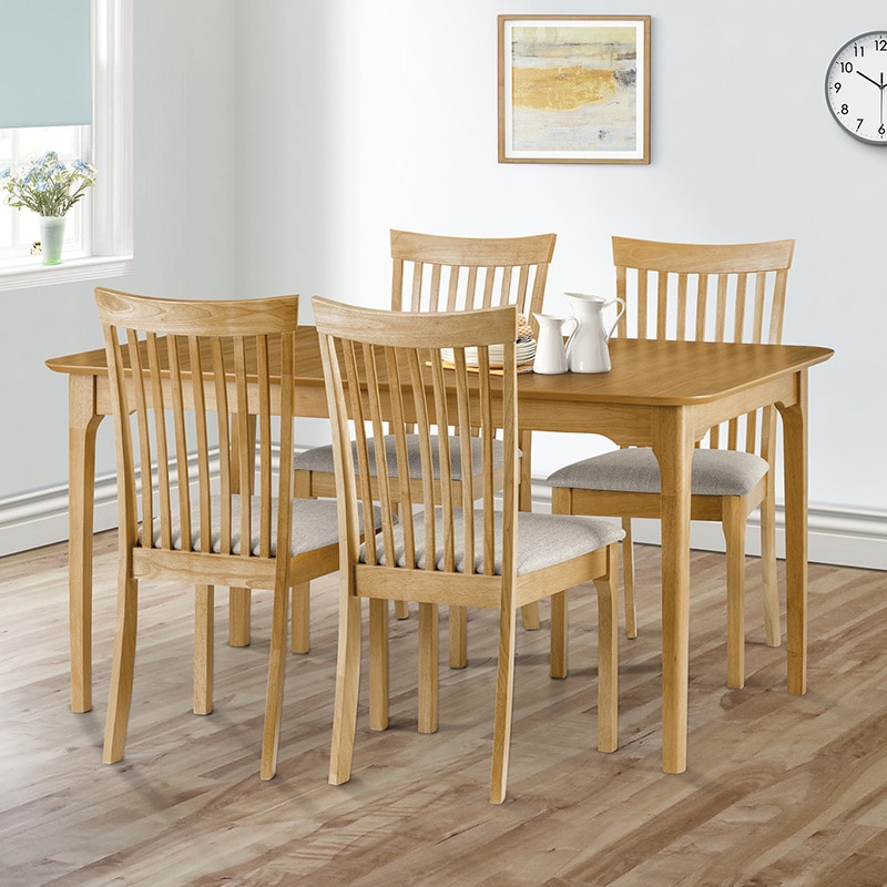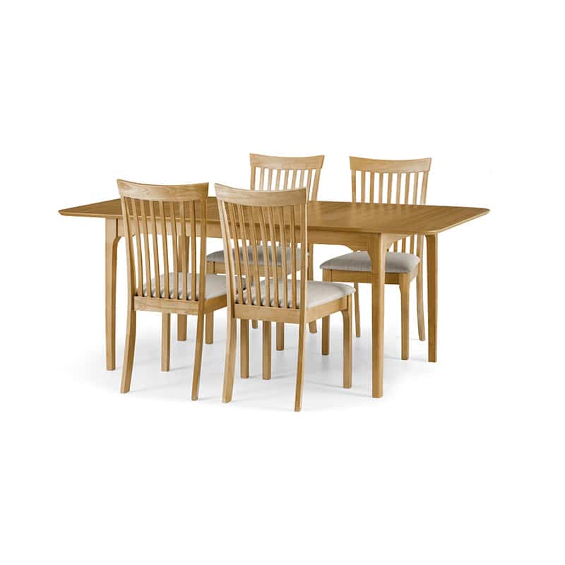 A beautifully crafted dining table that provides an elegant, contemporary take on the classic shaker style. The combination of real oak veneers with light oak finished hardwood base creates a sophisticated and highly desirable table that offers exceptional practicality thanks to an easy to use butterfly mechanism extension leaf.