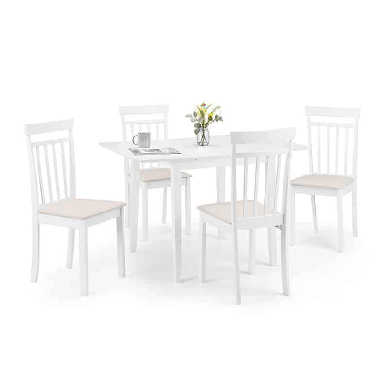 This Rufford 80cm-120cm Extending Dining Table has been constructed from tropical hardwood, and has a white lacquered finish which leaves a crisp, clean look. The stylish extending dining table incorporates a butterfly extension system, so there is no need to store a separate leaf. This is a great way to save space in your dining room and it is ideal when unexpected guests pop round!