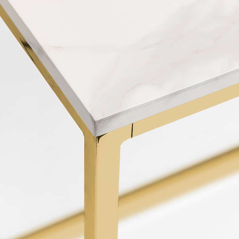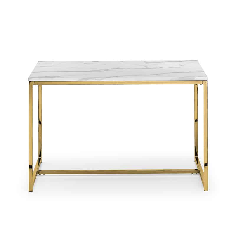 Scala is a sleek dining table with chic marble effect top on a well-crafted gold-plated stainless steel frame. It has a timeless Italian design that fits well with a wide range of decorative styles. Part of the Julian Bowen Scala Dining and Occasional furniture range.