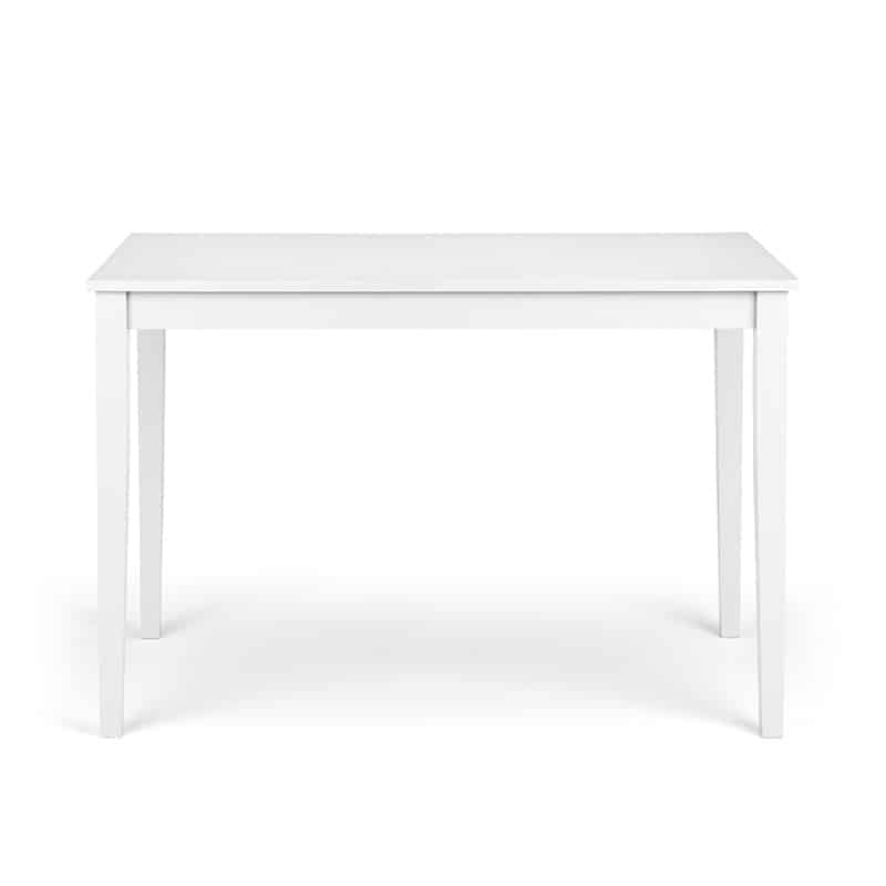 - A compact 4-place setting design in durable Satin White lacquered finish.
