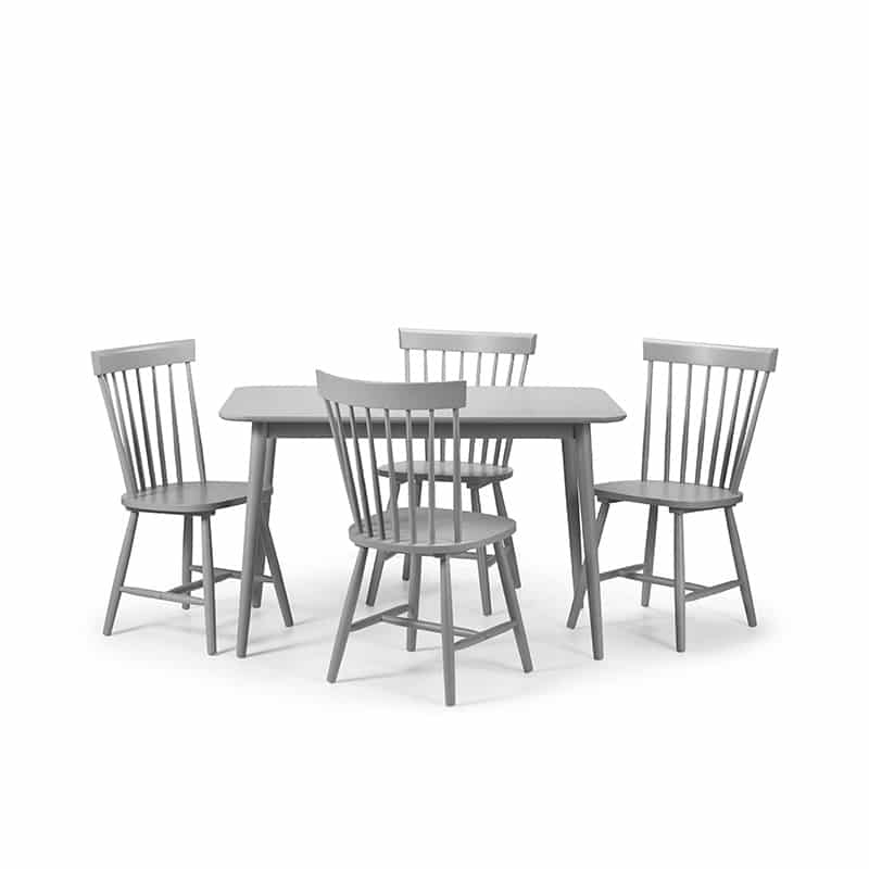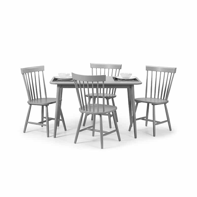 The Torino dining table is finished in an immaculate, on-trend, lacquered grey finish. Its subtly curved top combines with slanted legs for a simple, clean, modern look. The Torino table combines with the Torino Grey chair for a beautiful contemporary dining set.