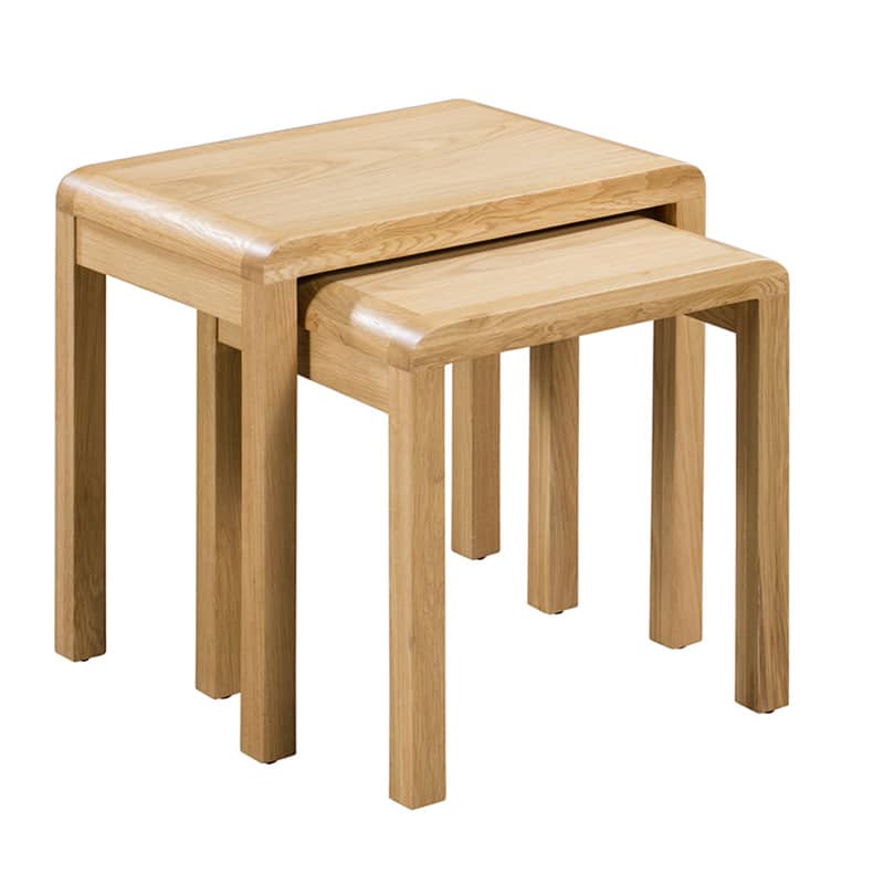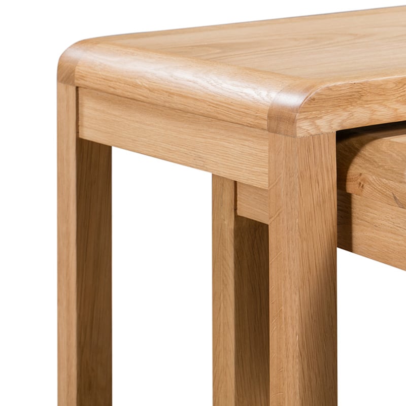 Crafted from solid oak and oak veneers, the Curve combines clean lines with a gentle curved ediging, adding a modern, retro feel to any dining area. The Curve Nest of Tables offers great space saving versatility with two tables for additional stylish storage. Part of the Julian Bowen Curve Dining and Occaional Collection.