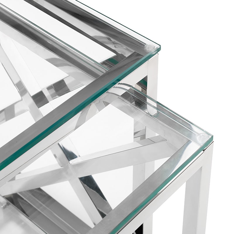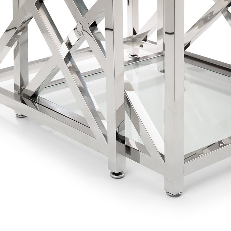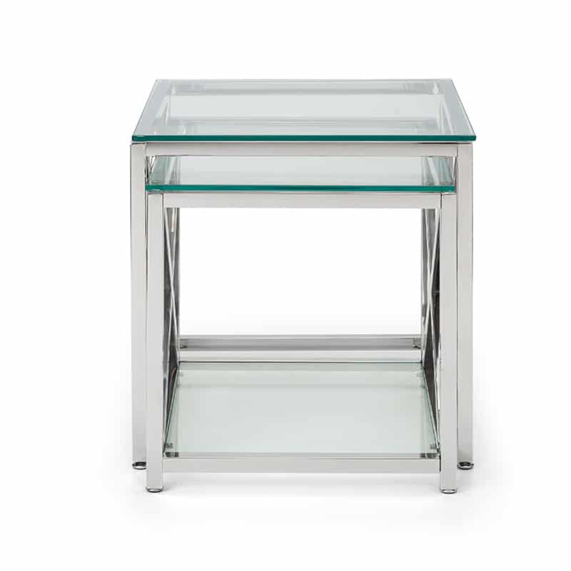 The lavish Miami occasional collection will add a touch of class and luxury to any home. Taking inspiration from the Art Deco period, the Miami features a striking cross frame design. Crafted from a chrome frame and tempered glass, this nest of tables would be a stunning addition to your space.