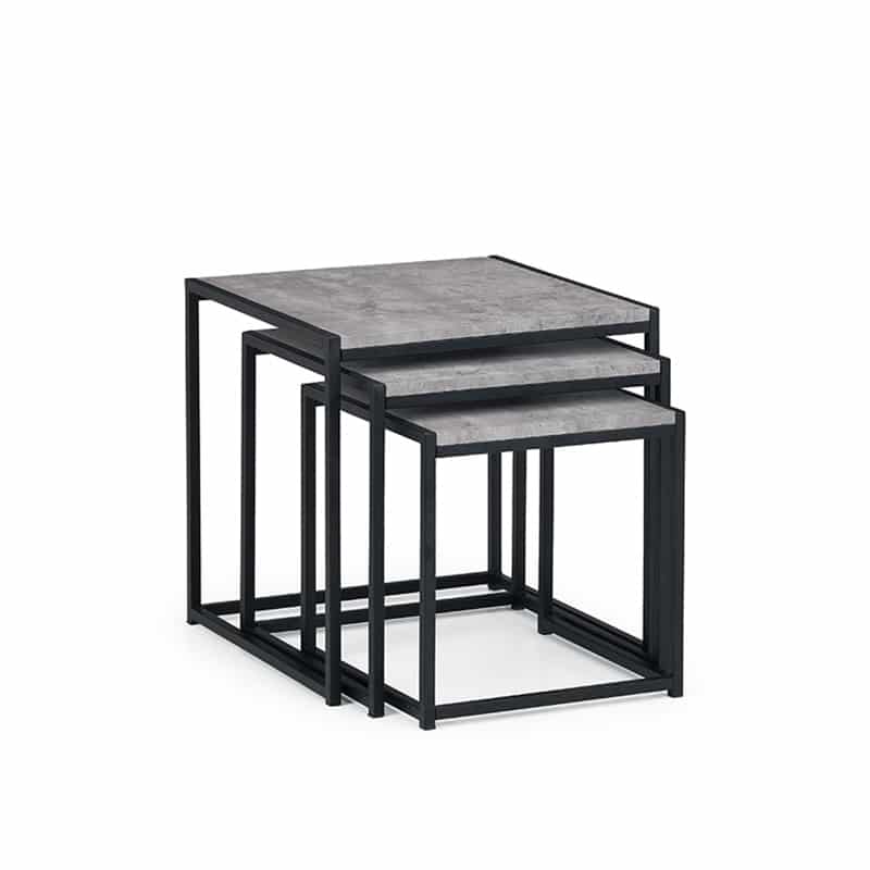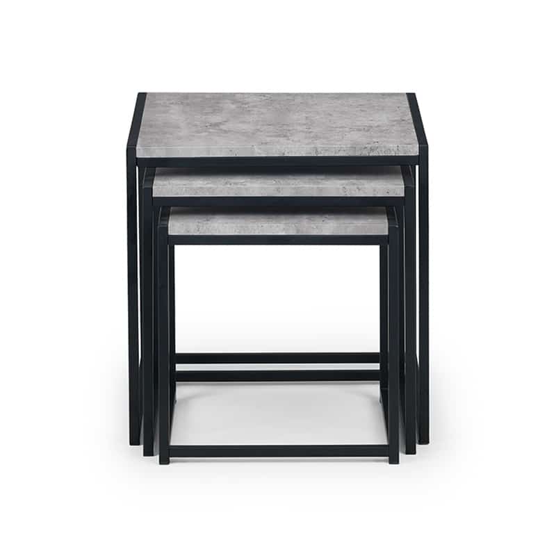 Simplistic in design with a contemporary style, the Staten Nest of Tables will add a stunning industrial look to any living and dining area. Constructed from a black coated metal frame, complemented by a striking concrete effect tops, to create a very stylish, modern product. Part of the Julian Bowen Staten Dining and Occasional Collection.