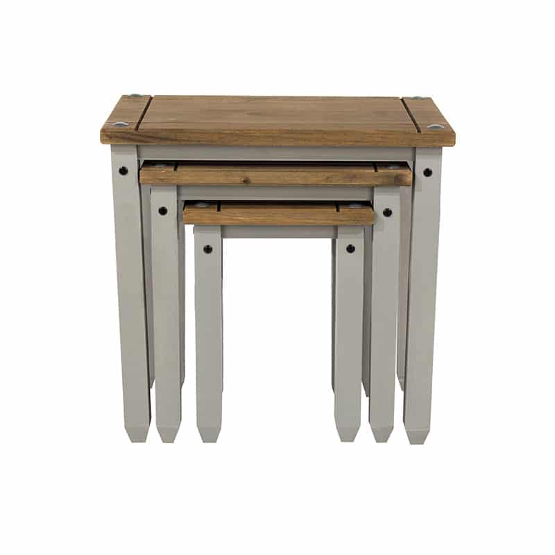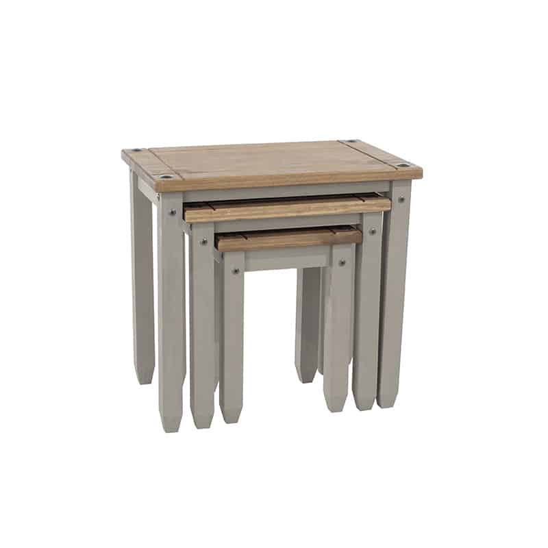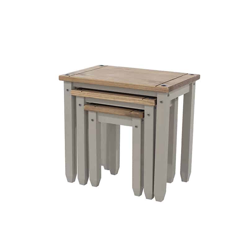 So what are you waiting for? Order your set today and get ready to take your home to the next level! Whether you’re looking for a space-saving solution, a stylish addition, or just a convenient place to put your stuff, our Grey Antique Nesting Tables are the answer. Trust us, you won’t regret it!